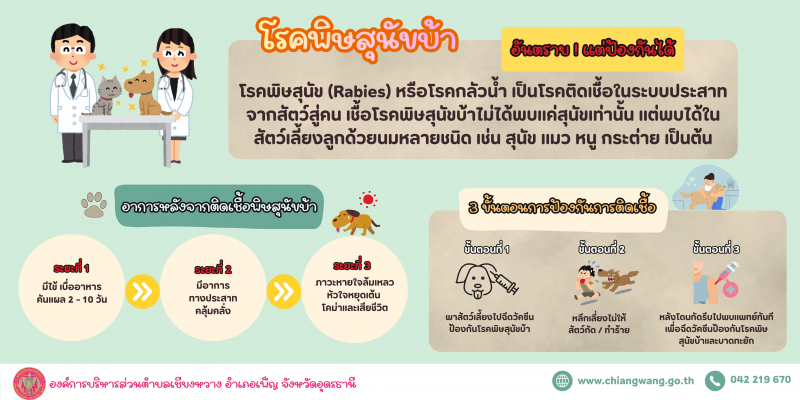ประชาสัมพันธ์จากงานสาธารณสุข สำนักปลัด การดำเนินการขึ้นทะเบียนสุนัข-แมว งบประมาณประจำปี 2569 และความรู้เรื่องวิธีป้องกัน อาการโรคพิษสุนัขบ้า